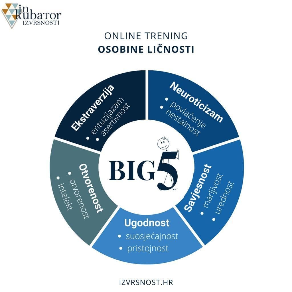 Big5 je središnja tema našeg treninga Osobine ličnosti: upoznaj sebe i druge. Na tom će treningu polaznici imati priliku riješiti upitnik i uz vodstvo proći rezultate i posebnosti pojedinih (pod)dimenzija.